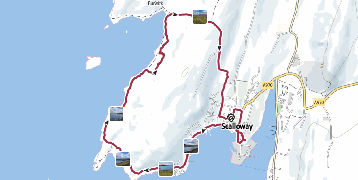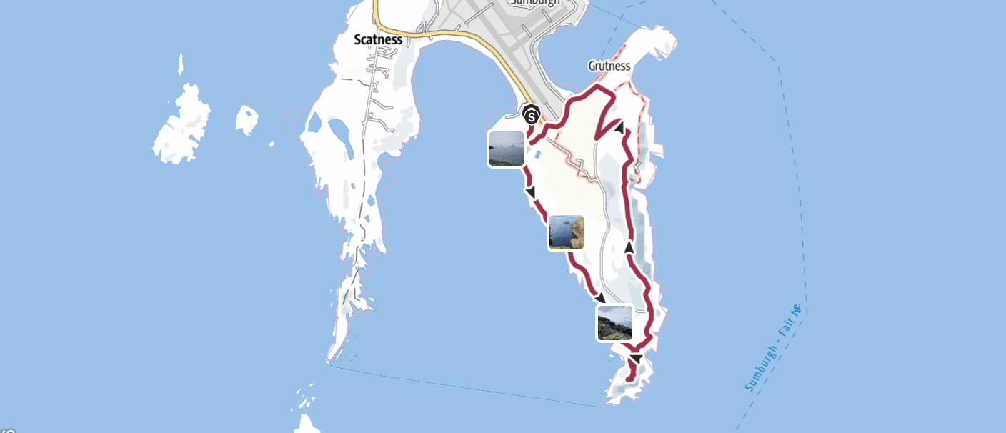 Vanaf de bushalte bij het hotel bezoeken we eerst een viking vesting Jarlshof, daarna over een mooi pad langs de kliffen naar een de vuurtoren bovenop een top van een berg. Van daaraf een prachtig uitzicht over de kust en Fair Isle in de verte. Maar ook een mooi zicht op broedende vogels zoals papegaaiduikers. Via een andere top maken we het rondje compleet.