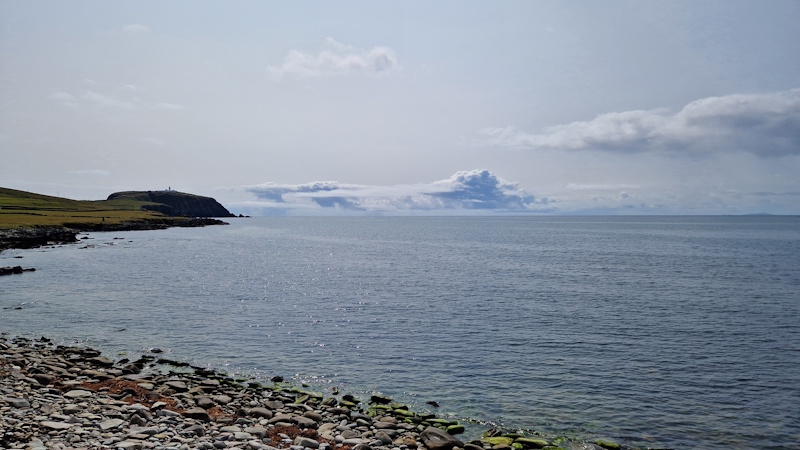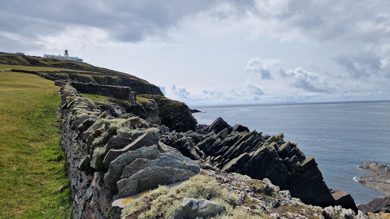 Vanaf de bushalte bij het hotel bezoeken we eerst een viking vesting Jarlshof, daarna over een mooi pad langs de kliffen naar een de vuurtoren bovenop een top van een berg. Van daaraf een prachtig uitzicht over de kust en Fair Isle in de verte. Maar ook een mooi zicht op broedende vogels zoals papegaaiduikers. Via een andere top maken we het rondje compleet.